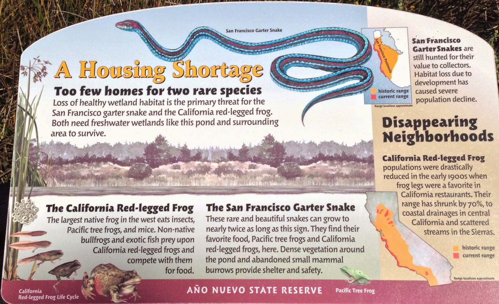 Before continuing our hike to South Point, we walked along Cove Beach. On the path to Cove Beach, we saw a flash of red and blue, the San Francisco Garter Snake, as it slithered into the bushes.